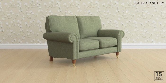 6.12.1 Buy Kingston by Laura Ashley 2 Seater Small Sofa Harley Moss Green Low Brass Castor - Teak from the Laura Ashley online shop Click here to use our website with more accessibility support, for example screen readers