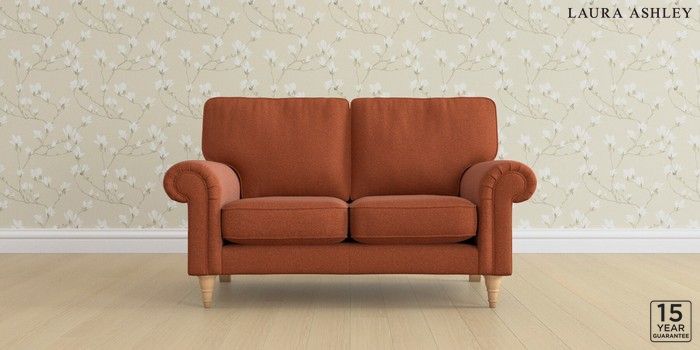 6.12.13 Buy Kingston by Laura Ashley 2 Seater Small Sofa Harley Terracotta Orange Low Turned - Light Oak from the Laura Ashley online shop Click here to use our website with more accessibility support, for example screen readers
