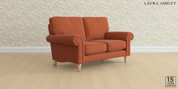 6.12.1 Buy Kingston by Laura Ashley 2 Seater Small Sofa Harley Terracotta Orange Low Turned - Light Oak from the Laura Ashley online shop Click here to use our website with more accessibility support, for example screen readers