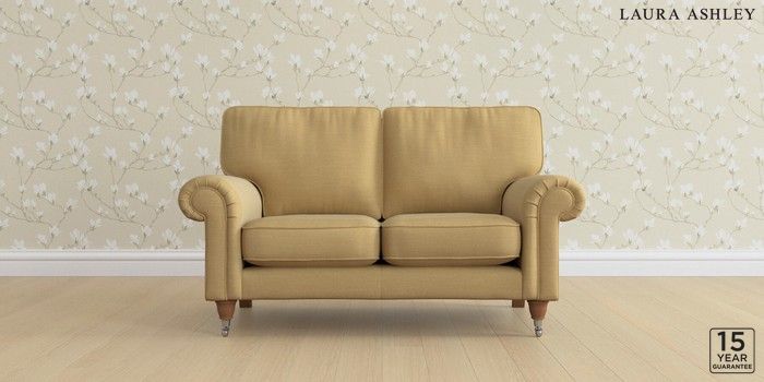 6.12.1 Buy Kingston by Laura Ashley 2 Seater Small Sofa Kinsham Ochre Yellow Low Chrome Castor - Teak from the Laura Ashley online shop Click here to use our website with more accessibility support, for example screen readers