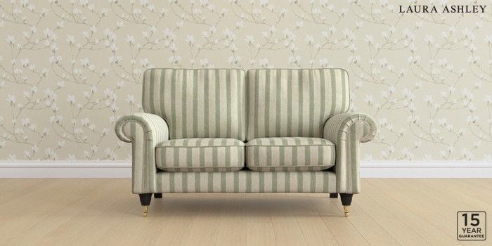 6.12.13 Buy Kingston by Laura Ashley 2 Seater Small Sofa Kinsham Stripe Hedgerow Green Low Brass Castor - Black from the Laura Ashley online shop Click here to use our website with more accessibility support, for example screen readers