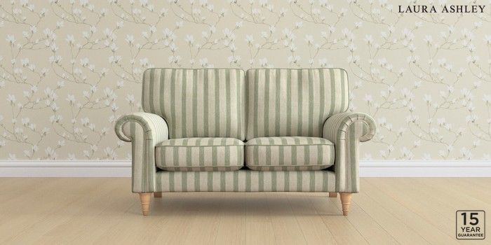 6.12.13 Buy Kingston by Laura Ashley 2 Seater Small Sofa Kinsham Stripe Hedgerow Green Low Turned - Light Oak from the Laura Ashley online shop Click here to use our website with more accessibility support, for example screen readers