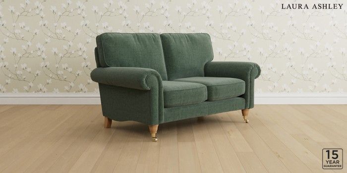6.12.1 Buy Kingston by Laura Ashley 2 Seater Small Sofa Nantmor Fern Green Low Chrome Castor - Light Oak from the Laura Ashley online shop Click here to use our website with more accessibility support, for example screen readers