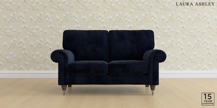 6.12.1 Buy Kingston by Laura Ashley 2 Seater Small Sofa Orla Midnight Navy Low Chrome Castor - Chestnut from the Laura Ashley online shop Click here to use our website with more accessibility support, for example screen readers
