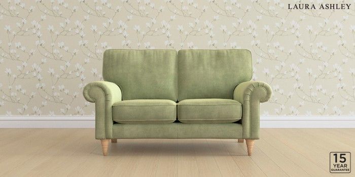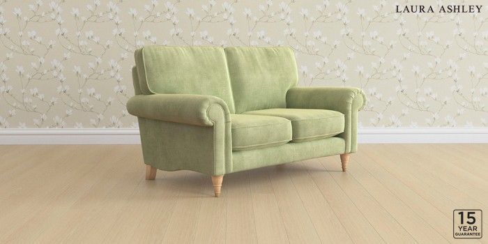 6.12.1 Buy Kingston by Laura Ashley 2 Seater Small Sofa Orla Pale Hedgerow Green Low Turned - Light Oak from the Laura Ashley online shop Click here to use our website with more accessibility support, for example screen readers