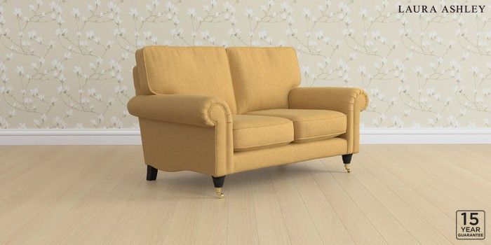 6.12.1 Buy Kingston by Laura Ashley 2 Seater Small Sofa Peyton Ochre Yellow Low Brass Castor - Black from the Laura Ashley online shop Click here to use our website with more accessibility support, for example screen readers