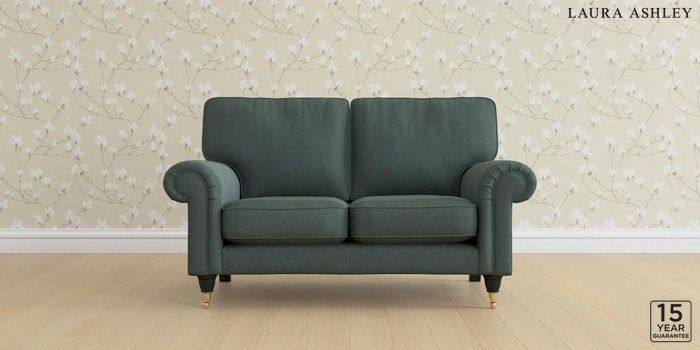 6.12.1 Buy Kingston by Laura Ashley 2 Seater Small Sofa Wooton Forest Green Low Brass Castor - Black from the Laura Ashley online shop Click here to use our website with more accessibility support, for example screen readers