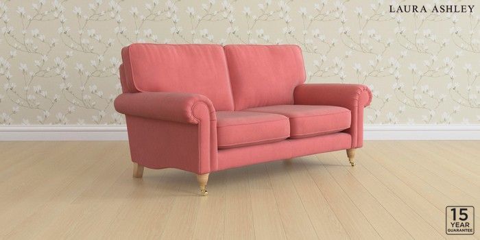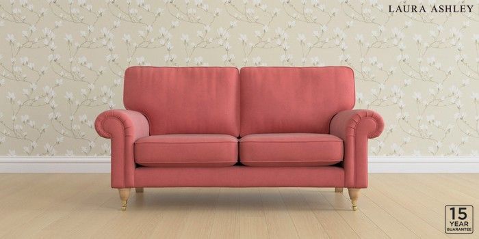 6.12.1 Buy Kingston by Laura Ashley 2 Seater Sofa Ailsworth Old Rose Pink Low Brass Castor - Light Oak from the Laura Ashley online shop Click here to use our website with more accessibility support, for example screen readers