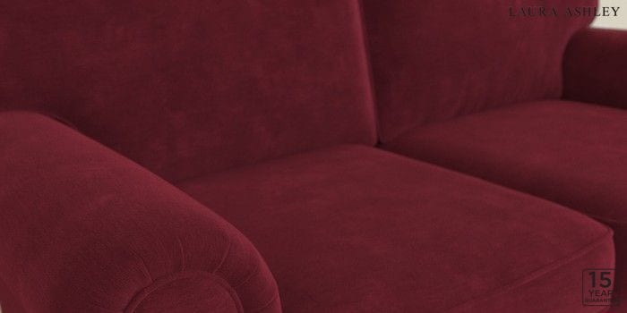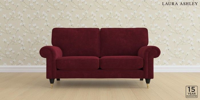 6.12.1 Buy Kingston by Laura Ashley 2 Seater Sofa Alwyn Velvet Burgundy Red Low Brass Castor - Black from the Laura Ashley online shop Click here to use our website with more accessibility support, for example screen readers