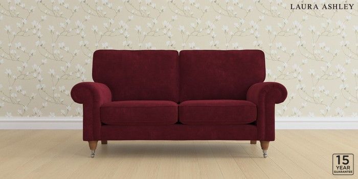 6.12.1 Buy Kingston by Laura Ashley 2 Seater Sofa Alwyn Velvet Burgundy Red Low Chrome Castor - Teak from the Laura Ashley online shop Click here to use our website with more accessibility support, for example screen readers