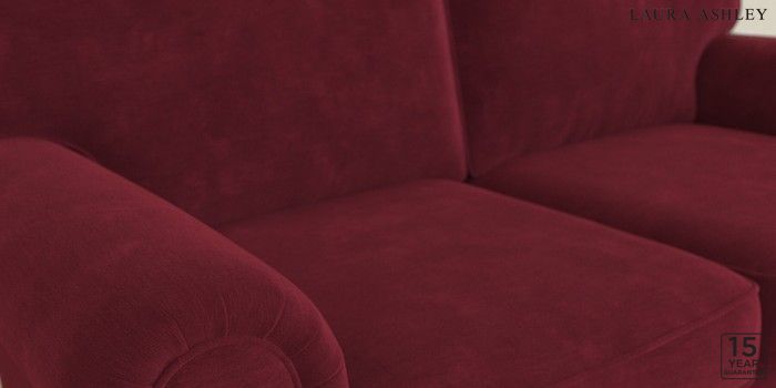 6.12.13 Buy Kingston by Laura Ashley 2 Seater Sofa Alwyn Velvet Burgundy Red Low Chrome Castor - Teak from the Laura Ashley online shop Click here to use our website with more accessibility support, for example screen readers