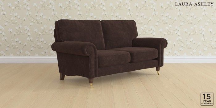 6.12.13 Buy Kingston by Laura Ashley 2 Seater Sofa Alwyn Velvet Chocolate Brown Low Brass Castor - Chestnut from the Laura Ashley online shop Click here to use our website with more accessibility support, for example screen readers