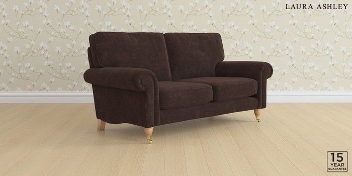 6.12.13 Buy Kingston by Laura Ashley 2 Seater Sofa Alwyn Velvet Chocolate Brown Low Brass Castor - Light Oak from the Laura Ashley online shop Click here to use our website with more accessibility support, for example screen readers