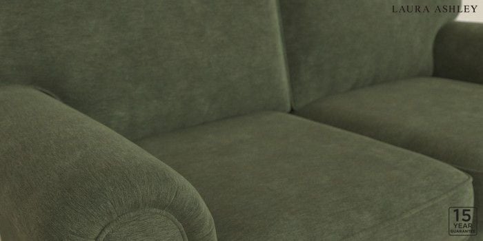 6.12.1 Buy Kingston by Laura Ashley 2 Seater Sofa Alwyn Velvet Ivy Green Low Brass Castor - Teak from the Laura Ashley online shop Click here to use our website with more accessibility support, for example screen readers