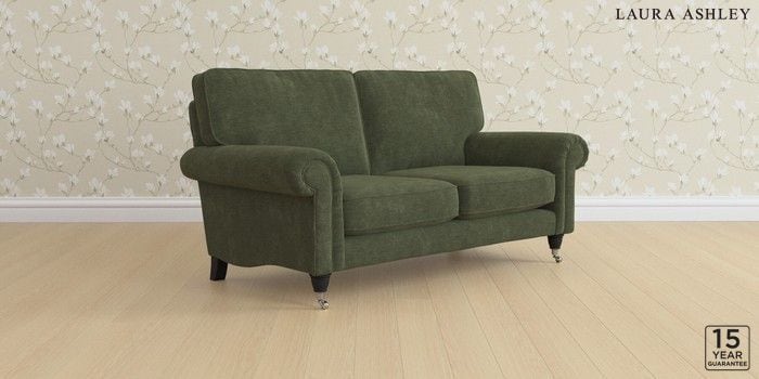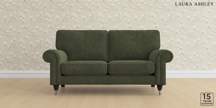 6.12.1 Buy Kingston by Laura Ashley 2 Seater Sofa Alwyn Velvet Ivy Green Low Chrome Castor - Black from the Laura Ashley online shop Click here to use our website with more accessibility support, for example screen readers