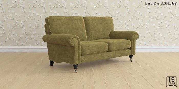 6.12.13 Buy Kingston by Laura Ashley 2 Seater Sofa Alwyn Velvet Olive Green Low Chrome Castor - Black from the Laura Ashley online shop Click here to use our website with more accessibility support, for example screen readers