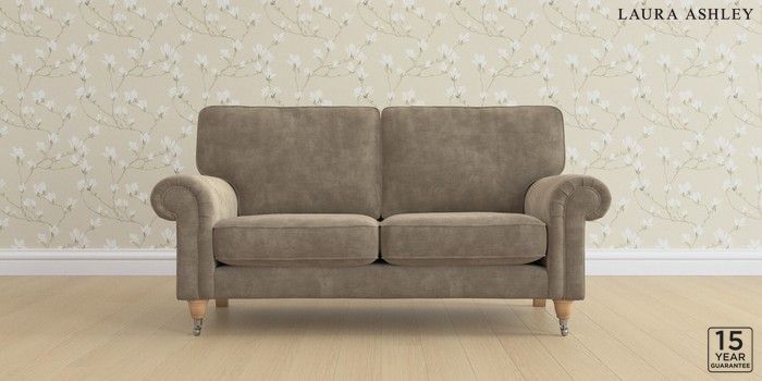 6.12.13 Buy Kingston by Laura Ashley 2 Seater Sofa Alwyn Velvet Truffle Natural Low Chrome Castor - Light Oak from the Laura Ashley online shop Click here to use our website with more accessibility support, for example screen readers