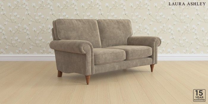 6.12.1 Buy Kingston by Laura Ashley 2 Seater Sofa Alwyn Velvet Truffle Natural Low Turned - Teak from the Laura Ashley online shop Click here to use our website with more accessibility support, for example screen readers