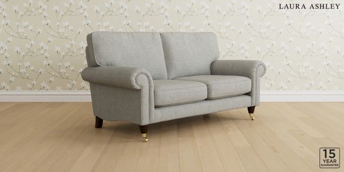 6.12.1 Buy Kingston by Laura Ashley 2 Seater Sofa Anneliese Steel Grey Low Brass Castor - Chestnut from the Laura Ashley online shop Click here to use our website with more accessibility support, for example screen readers