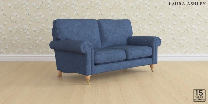 6.12.1 Buy Kingston by Laura Ashley 2 Seater Sofa Bainton Midnight Navy Low Brass Castor - Light Oak from the Laura Ashley online shop Click here to use our website with more accessibility support, for example screen readers