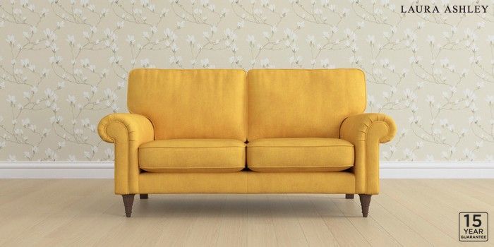 6.12.1 Buy Kingston by Laura Ashley 2 Seater Sofa Bainton Ochre Yellow Low Turned - Chestnut from the Laura Ashley online shop Click here to use our website with more accessibility support, for example screen readers