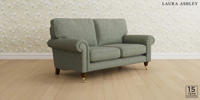 6.12.1 Buy Kingston by Laura Ashley 2 Seater Sofa Bainton Sage Green Low Brass Castor - Teak from the Laura Ashley online shop Click here to use our website with more accessibility support, for example screen readers