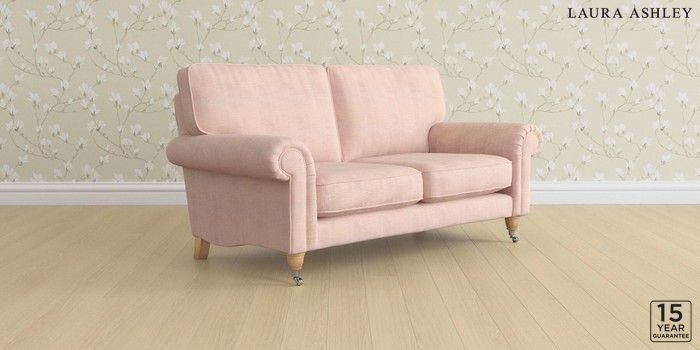 6.12.1 Buy Kingston by Laura Ashley 2 Seater Sofa Edwin Chenille Blush Pink Low Chrome Castor - Light Oak from the Laura Ashley online shop Click here to use our website with more accessibility support, for example screen readers