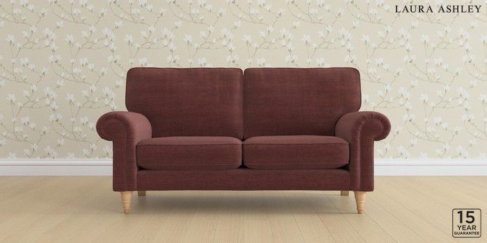 6.12.1 Buy Kingston by Laura Ashley 2 Seater Sofa Edwin Chenille Burgundy Red Low Turned - Light Oak from the Laura Ashley online shop Click here to use our website with more accessibility support, for example screen readers