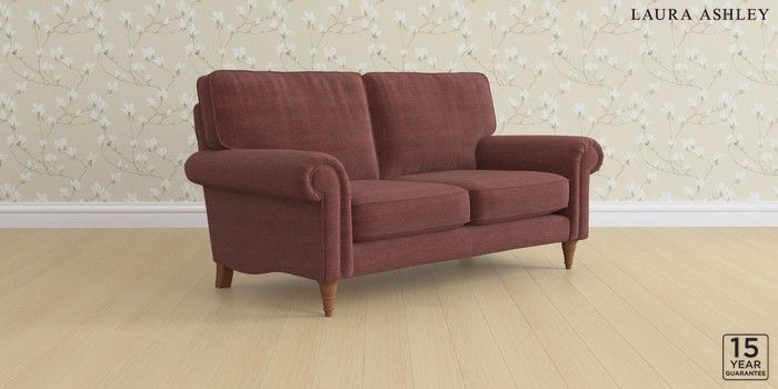 6.12.1 Buy Kingston by Laura Ashley 2 Seater Sofa Edwin Chenille Burgundy Red Low Turned - Teak from the Laura Ashley online shop Click here to use our website with more accessibility support, for example screen readers