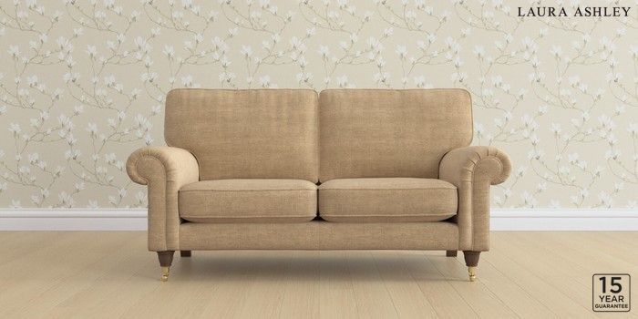 6.12.1 Buy Kingston by Laura Ashley 2 Seater Sofa Edwin Chenille Gold Natural Low Brass Castor - Chestnut from the Laura Ashley online shop Click here to use our website with more accessibility support, for example screen readers