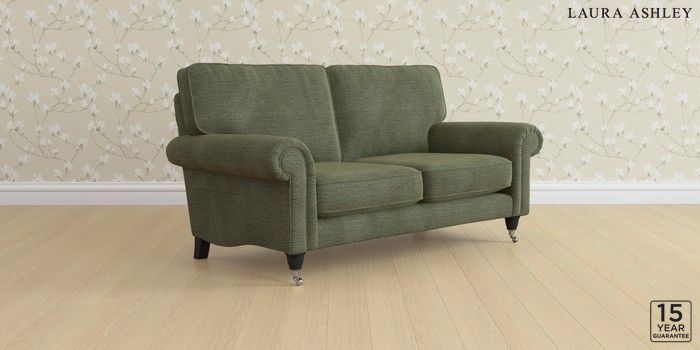 6.12.1 Buy Kingston by Laura Ashley 2 Seater Sofa Edwin Chenille Hedgerow Green Low Chrome Castor - Black from the Laura Ashley online shop Click here to use our website with more accessibility support, for example screen readers