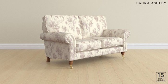 6.12.13 Buy Kingston by Laura Ashley 2 Seater Sofa Gosford Weave Dusky Plum Purple Low Brass Castor - Teak from the Laura Ashley online shop Click here to use our website with more accessibility support, for example screen readers