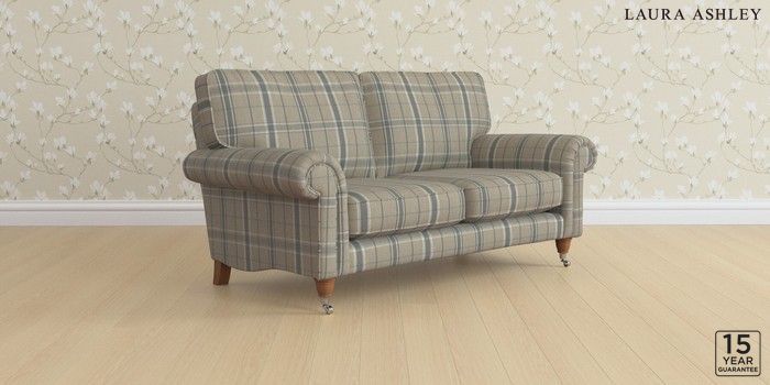 6.12.13 Buy Kingston by Laura Ashley 2 Seater Sofa Longstowe Check French Grey Low Chrome Castor - Teak from the Laura Ashley online shop Click here to use our website with more accessibility support, for example screen readers