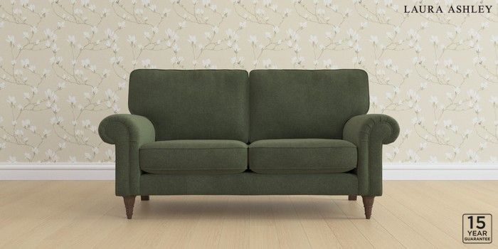 6.12.1 Buy Kingston by Laura Ashley 2 Seater Sofa Lundar Chenille Ivy Green Low Turned - Chestnut from the Laura Ashley online shop Click here to use our website with more accessibility support, for example screen readers