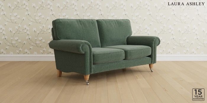 6.12.1 Buy Kingston by Laura Ashley 2 Seater Sofa Nantmor Fern Green Low Chrome Castor - Light Oak from the Laura Ashley online shop Click here to use our website with more accessibility support, for example screen readers