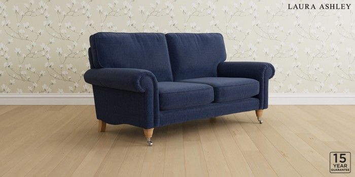 6.12.1 Buy Kingston by Laura Ashley 2 Seater Sofa Nantmor Midnight Navy Low Chrome Castor - Light Oak from the Laura Ashley online shop Click here to use our website with more accessibility support, for example screen readers