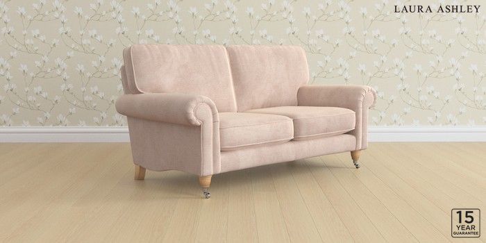 6.12.1 Buy Kingston by Laura Ashley 2 Seater Sofa Orla Chalk Pink Low Chrome Castor - Light Oak from the Laura Ashley online shop Click here to use our website with more accessibility support, for example screen readers