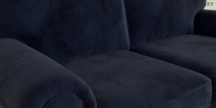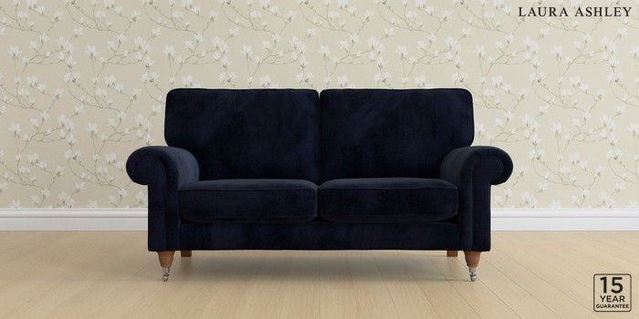 6.12.13 Buy Kingston by Laura Ashley 2 Seater Sofa Orla Midnight Navy Low Chrome Castor - Teak from the Laura Ashley online shop Click here to use our website with more accessibility support, for example screen readers