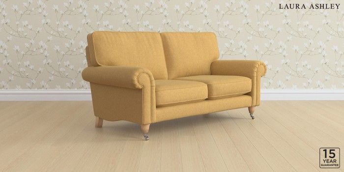 6.12.1 Buy Kingston by Laura Ashley 2 Seater Sofa Peyton Ochre Yellow Low Chrome Castor - Light Oak from the Laura Ashley online shop Click here to use our website with more accessibility support, for example screen readers