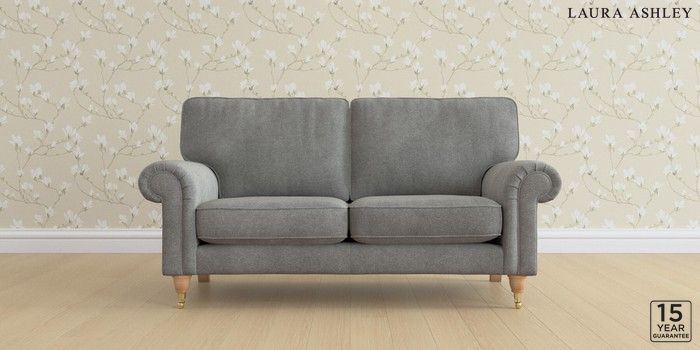 6.12.13 Buy Kingston by Laura Ashley 2 Seater Sofa Wooton Dark Steel Grey Low Brass Castor - Light Oak from the Laura Ashley online shop Click here to use our website with more accessibility support, for example screen readers