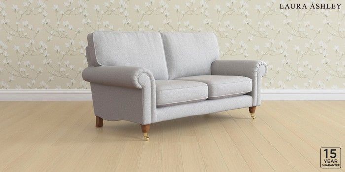 6.12.1 Buy Kingston by Laura Ashley 2 Seater Sofa Wooton Pale Steel Grey Low Brass Castor - Teak from the Laura Ashley online shop Click here to use our website with more accessibility support, for example screen readers