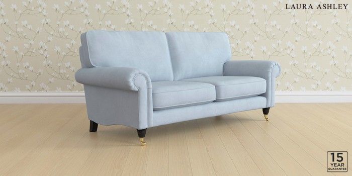 6.12.1 Buy Kingston by Laura Ashley 3 Seater Small Sofa Ailsworth Newport Blue Low Brass Castor - Black from the Laura Ashley online shop Click here to use our website with more accessibility support, for example screen readers
