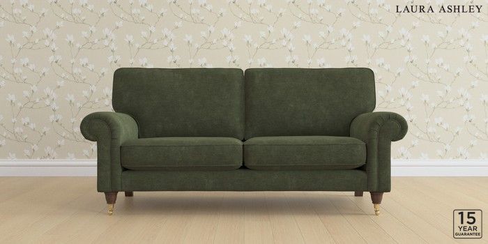 6.12.1 Buy Kingston by Laura Ashley 3 Seater Small Sofa Alwyn Velvet Ivy Green Low Brass Castor - Chestnut from the Laura Ashley online shop Click here to use our website with more accessibility support, for example screen readers