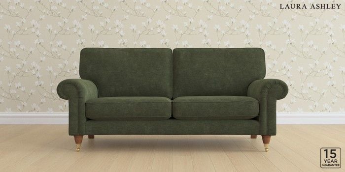 6.12.1 Buy Kingston by Laura Ashley 3 Seater Small Sofa Alwyn Velvet Ivy Green Low Brass Castor - Teak from the Laura Ashley online shop Click here to use our website with more accessibility support, for example screen readers