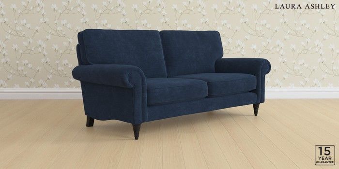 6.12.1 Buy Kingston by Laura Ashley 3 Seater Small Sofa Alwyn Velvet Midnight Navy Low Turned - Black from the Laura Ashley online shop Click here to use our website with more accessibility support, for example screen readers