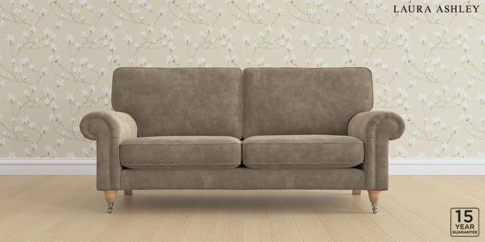 6.12.1 Buy Kingston by Laura Ashley 3 Seater Small Sofa Alwyn Velvet Truffle Natural Low Chrome Castor - Light Oak from the Laura Ashley online shop Click here to use our website with more accessibility support, for example screen readers