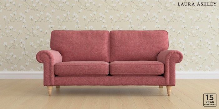 6.12.1 Buy Kingston by Laura Ashley 3 Seater Small Sofa Anneliese Rosewood Red Low Turned - Light Oak from the Laura Ashley online shop Click here to use our website with more accessibility support, for example screen readers