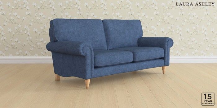 6.12.1 Buy Kingston by Laura Ashley 3 Seater Small Sofa Bainton Midnight Navy Low Turned - Light Oak from the Laura Ashley online shop Click here to use our website with more accessibility support, for example screen readers