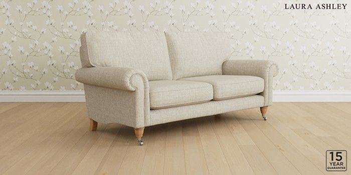 6.12.1 Buy Kingston by Laura Ashley 3 Seater Small Sofa Bainton Natural Low Chrome Castor - Light Oak from the Laura Ashley online shop Click here to use our website with more accessibility support, for example screen readers