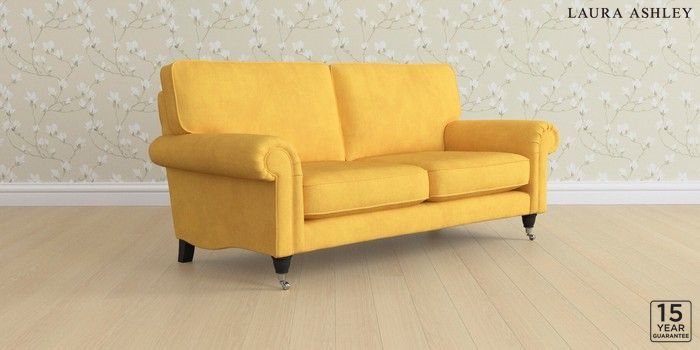 6.12.1 Buy Kingston by Laura Ashley 3 Seater Small Sofa Bainton Ochre Yellow Low Chrome Castor - Black from the Laura Ashley online shop Click here to use our website with more accessibility support, for example screen readers